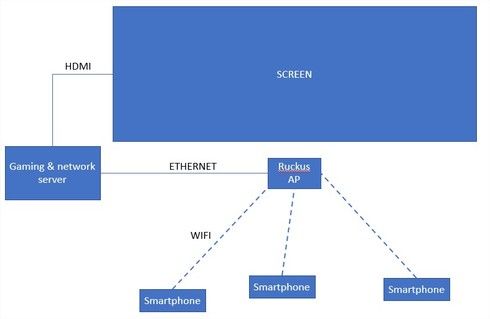 The purpose is to make 200 concurrent players, in the same place, using their smartphones connected to through WIFI to a "local gaming server" to play a game running on a giant screen: