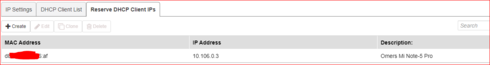 I created a DHCP pool 10.106.0.1/16 and reserved IP address 10.106.0.3 for my Android phone in DHCP. When I connected my phone to WLAN, I got the same IP (IP which is reserved).