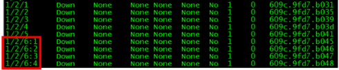 Note: The new port numbers end with :1 to :4. This indicated which 10G port is broke out of the 40G port. From this point on, all ports will be referenced like 1/2/6:1 for all configuration purposes.