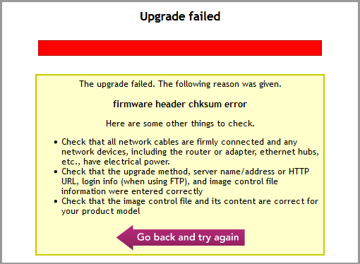 Error indicate issue in firmware file (chksum error means file may be got corrupted during the download or while moving from one location to another).