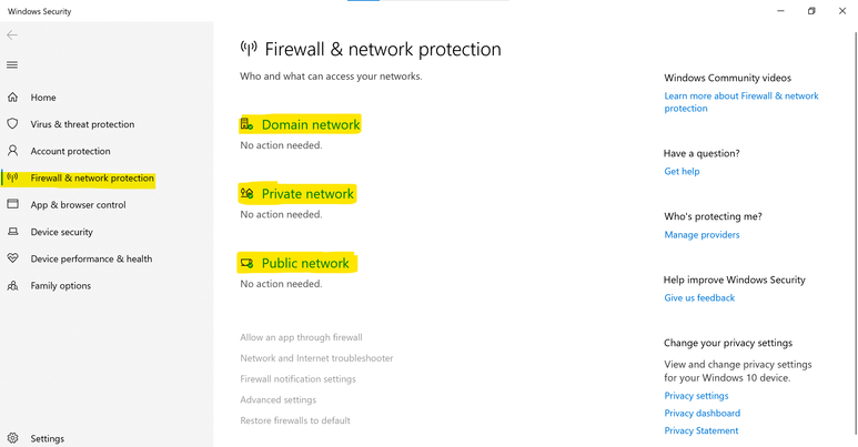 FIGURE 2: Firewall & Network Protection Settings