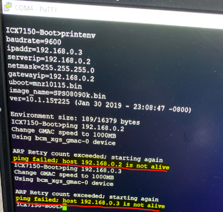 5. Restart PuTTY and begin the Software Recovery process again, starting from the setenv IP configuration step in the official recovery guide.