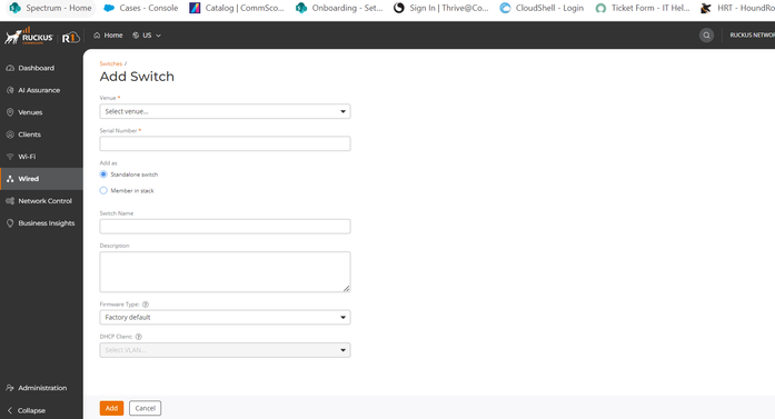 Add other details like. Serial number, Venue , Switch is standalone / Stack and switch name