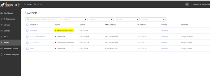 Note : The cloud will auto push 9010e to the switch but the process may take time if auto pushed by cloud