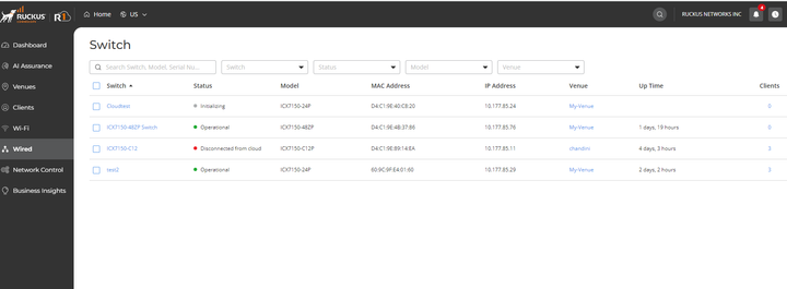 Switch Product Series supported on RUCKUS One