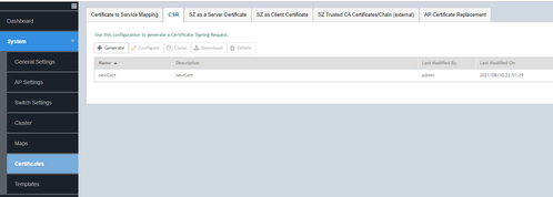 System >> Certificates >> CSR >> Generate