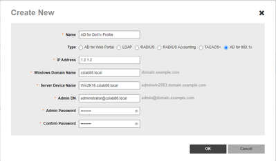 b. Click on create tab, choose profile type as “AD for 802.1x”