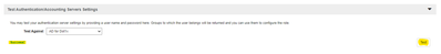 a. Navigate to “Services & Profiles” menu and locate “AAA Servers. Under “Test Auth/Acc Servers Settings” section. Chose the AD for Dot1x profile needs to be tested and hit “Test” tab. If the profile configuration is correct, we could see success! Message.