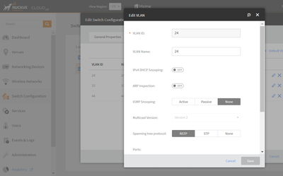 When a switch is registered on RUCKUS Cloud under this venue comes online, it inherits all the configuration from the profile. You can always override the configuration by editing the switch directly from Ruckus Cloud >> Network Devices >> Switches >> Click on the switch you wish to edit >> Edit Switch