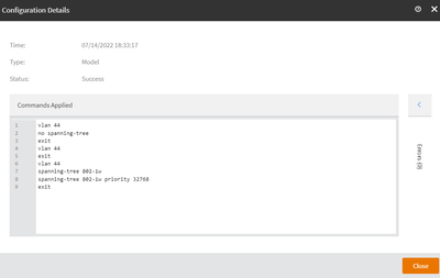 You can review the configuration management on an online switch from: Ruckus Cloud >> Network Devices >> Switches >> Click on the switch you wish to review >> Configuration Management >> History