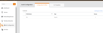Switch Configuration profiles allow you to define the VLANs for Switch models of your choice and Access Control Lists (ACLs). Once defined, these switch profiles can be applied to one or more venues. Any switch joining a venue will have the defined configuration applied automatically. You can create switch configuration profiles and attach these profiles to venues as required.
