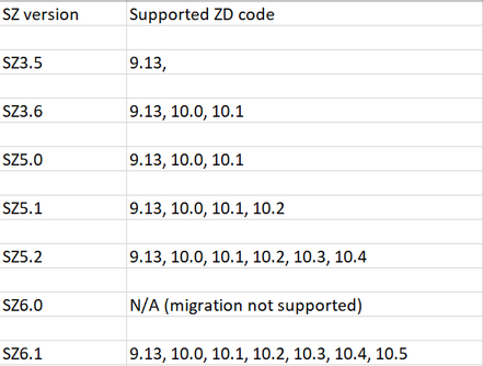 Supported ZD to SZ migration code :