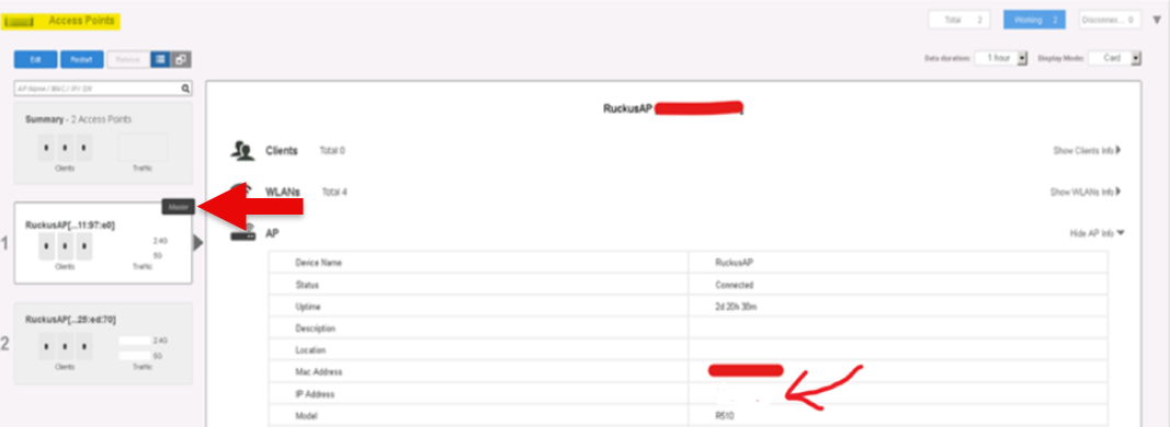 If the link is not working, please check the IP address of the Master Access Point from the web browser where you were previously able to access the system. The screenshot below indicates where the Master Access Point IP address can be found. Once you find it access it in the FireFox Browser to proceed with Unleashed upgrade.