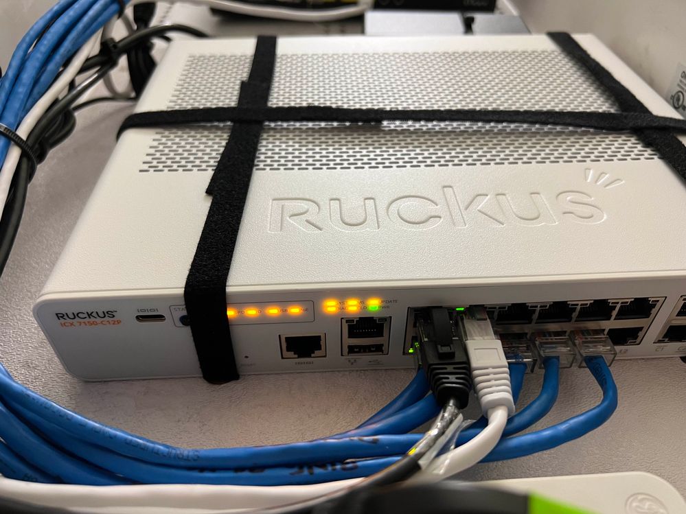 Please help us with pictures of your ICX-7150-C12P Switch showing the status of the lights and cable connections to the Switch ports. Also, light the status of Access Points.