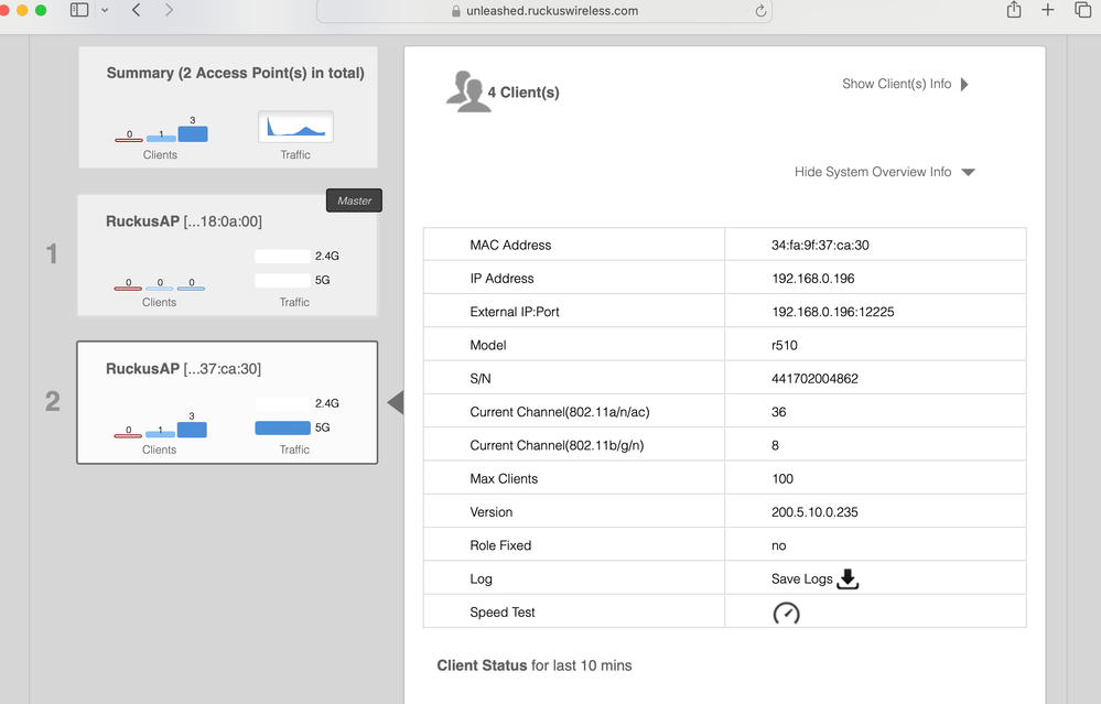 Could you please log in to your Unleashed system on a LAPTOP WEB BROWSER using the Master AP IP Address OR https://unleashed.ruckuswireless.com/ ?