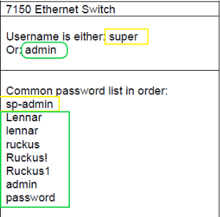 If these credentials do not work, you may also try the following alternative default combinations mentioned in the screenshot: