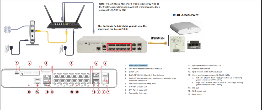 Secondly I don't have a router as specified in your instructions for obtaining an IP address from my service provider. I have a fiber>coax converter made by Aris & provided by my internet provider & I've got a Net Gear CM1000 modem which I am trying to run directly to the ICX switch which no longer shows up in my Ruckus Unleased app even though my 20+ clients, 2 AP's & 1 network do.