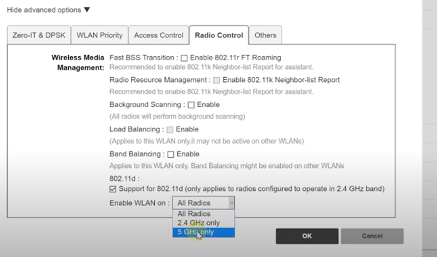 10 ) Select the option that says 5 GHz Only or 2.4 GHz Only to work just in that radio. ( step optional )