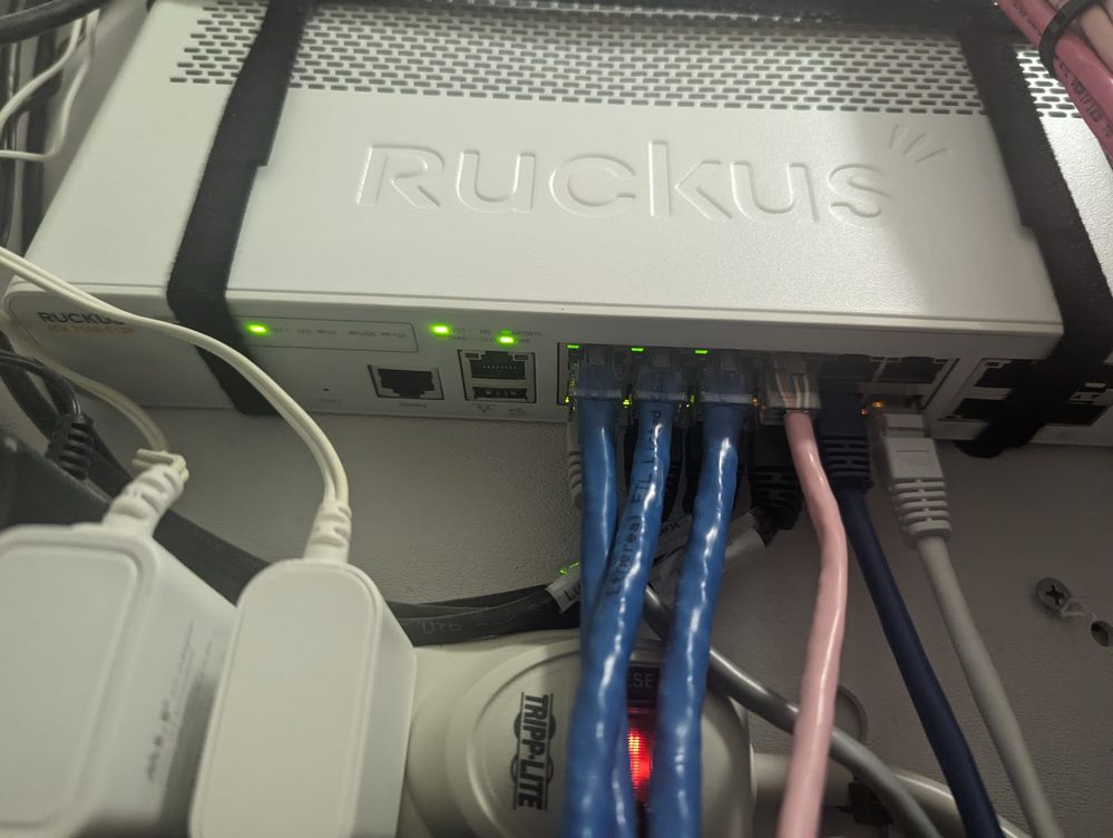 Please help us with pictures of your ICX-7150-C12P Switch showing the status of the lights and cable connections to the Switch ports. Also, light the status of Access Points.