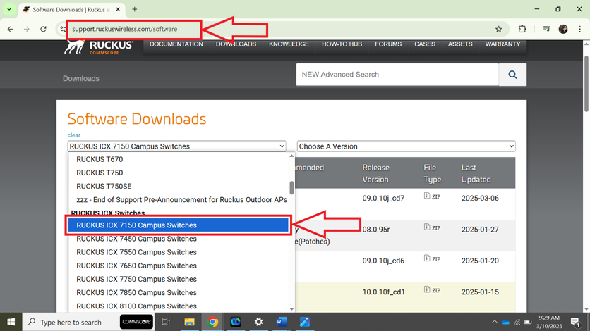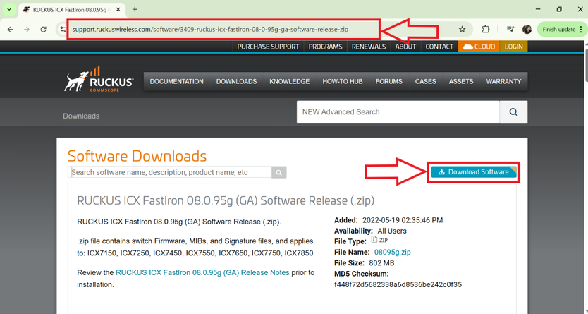 4. Select RUCKUS ICX FastIron 08.0.95g (GA) Software Release (.zip).