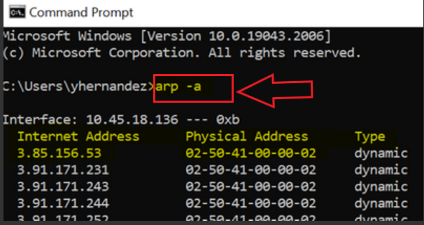2. This is alternate process if you do not find the IP Address using IP Scanner Application described in the Point 1.Click Start button and type cmd and open Command prompt. Type the command arp -a. The switch's IP and MAC addresses can be viewed in the Command Prompt. To identify the switch, match the MAC address listed in the output with the one printed on the label affixed to the switch.