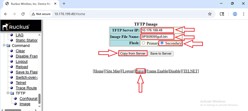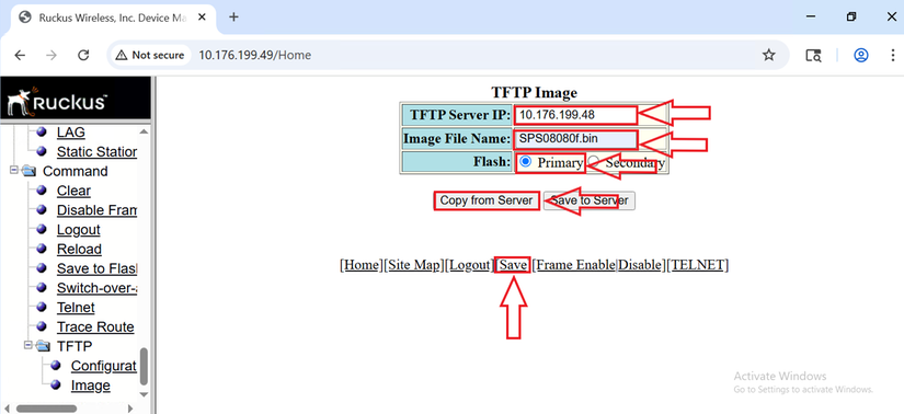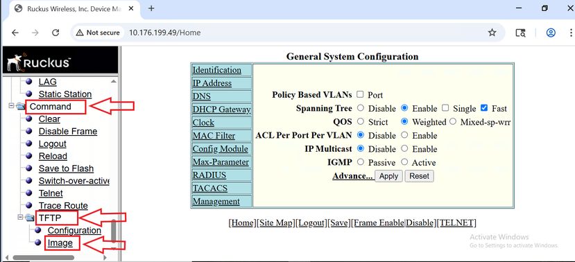 1. In the left pane, click on Command, then navigate to TFTP > Image > TFTP Image.