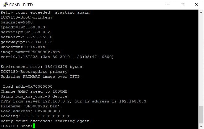 Ruckus ICX Recovery Load boot code from boot monitor