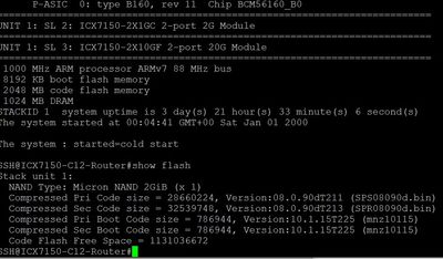 ICX7150-24P Router#boot system flash secondary yes (hit enter to accept the command: the switch will reboot)