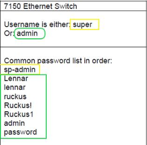 Switch default credentials will be as mentioned below.