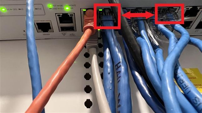 1. Please make sure the Ethernet cable is connected to anyone in the 12 ports shown in the picture below: