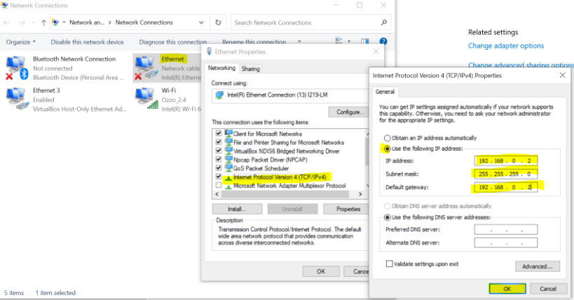 Could you please verify if the same IP address has been assigned to the Ethernet adapter via Device Manager? Kindly refer to the screenshot below for reference. If there are differences, that will not work. Please check.