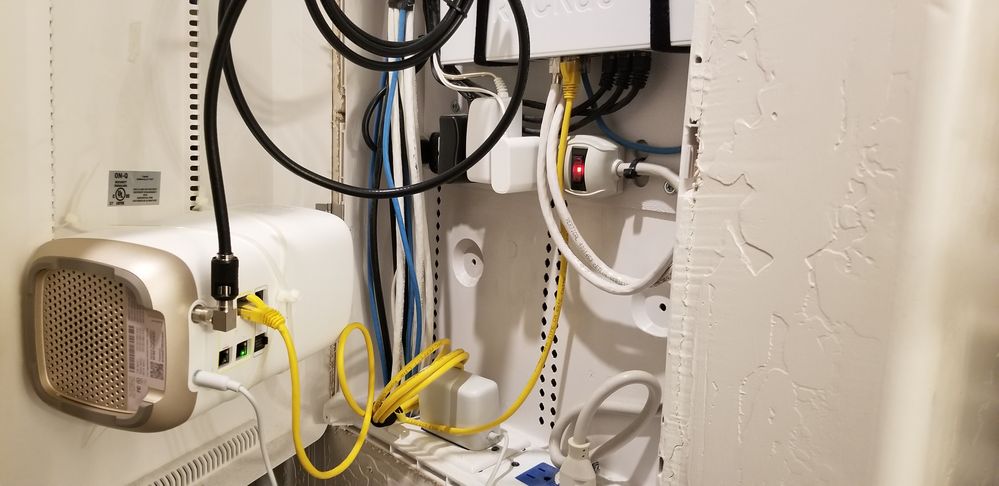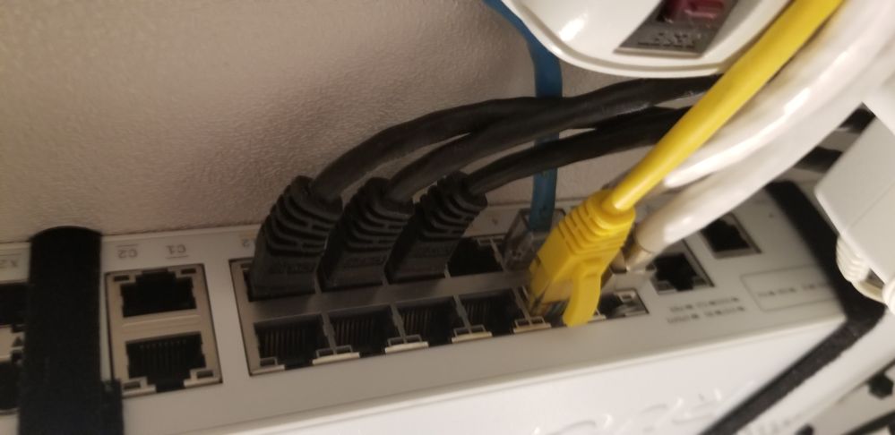 1. When your switch is connected to the outlet, do you observe any illuminated lights (amber or green)? Kindly describe which lights are visible. Additionally, please provide a photo showing the status of the lights and the full switch panel with cable connections to the switch ports.