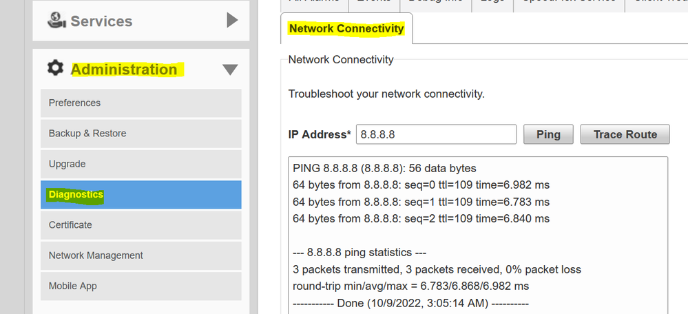 Thanks for your help. I'm afraid this is out of my depth. I tried a simpler solution, switching ports for the ethernet cable on the Ruckus box.  I did try the ping and that works. I do not have the same data to show as you display. The Ruckus-Unleashed mobile app isn't so user friendly for a novice.