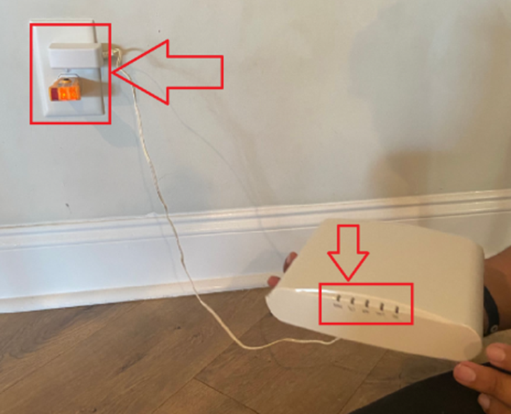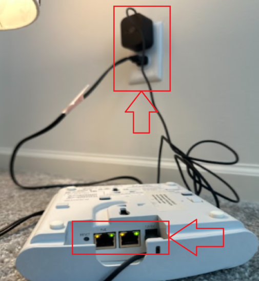 We kindly request that you connect your RUCKUS R510 Access Point (AP) one by one to a functional power outlet and share both pictures and a single video showcasing the light status, the 12 VDC External power adapter connected to the AP, and its connection to a working power outlet. Please refer to the example pictures provided below for guidance.