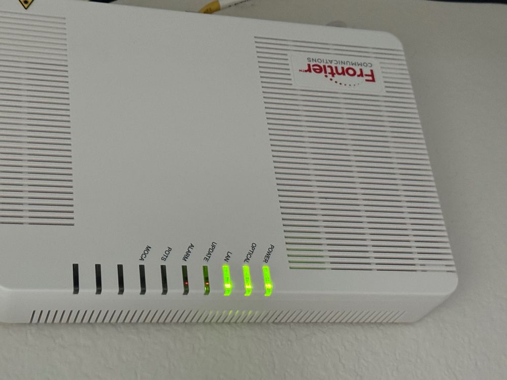 No lights illuminated (green or amber). This is the same on the ruckus ICX and the two extenders. No power. We have frontier for our internet. We currently have internet directly through frontier router.