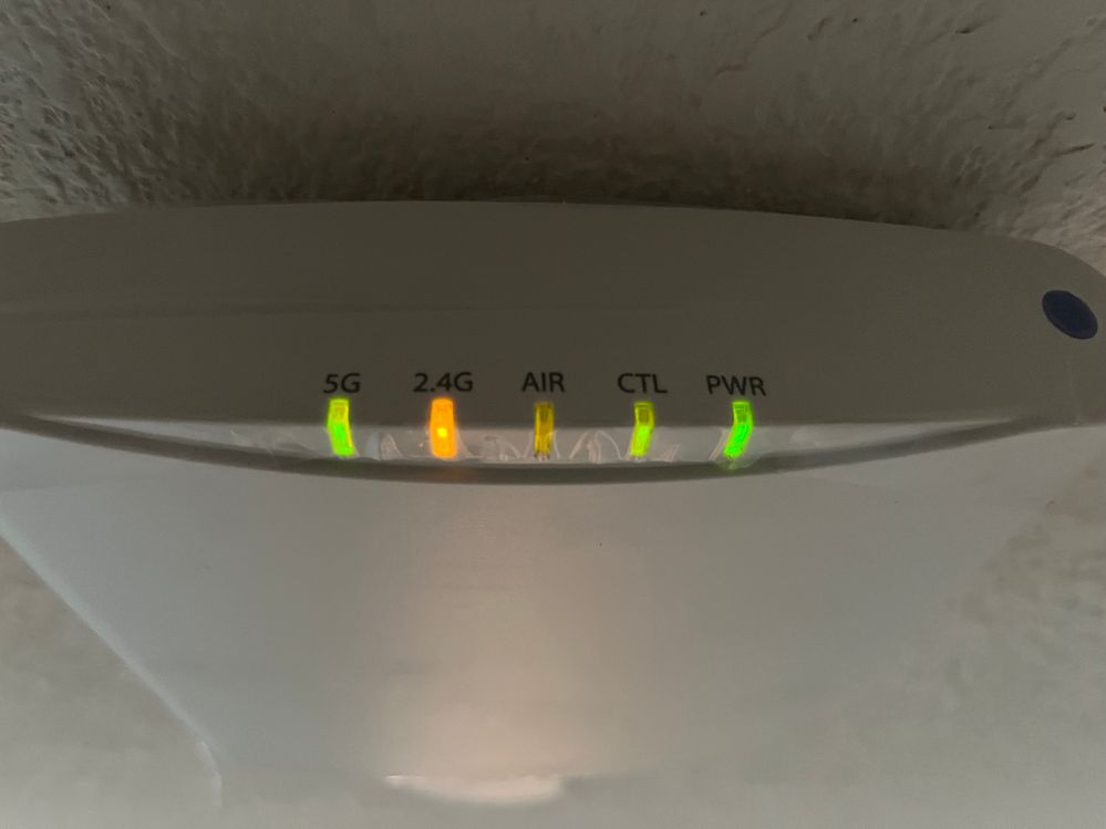 [Same status] One access point shows four lights illuminated solid green (Power, CTL, 2.5G, 5G)