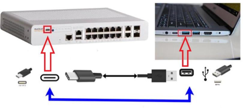 I don't have permission to upload images, but I am connected to the USB-C in the Ruckus box and USB in my Windows computer.