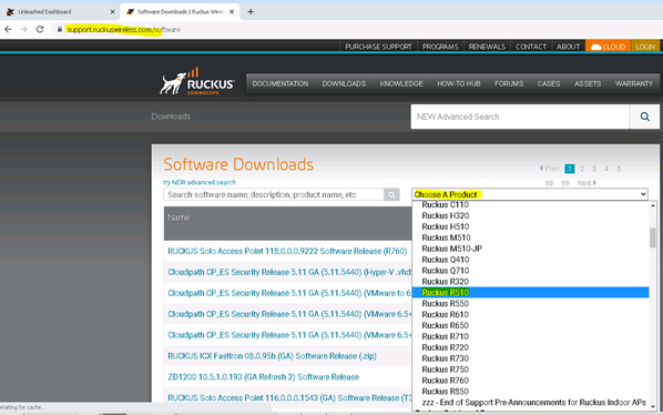 2) Go to the support page using the local to download the BL7 file on the support page in the support portal https://support.ruckuswireless.com/software