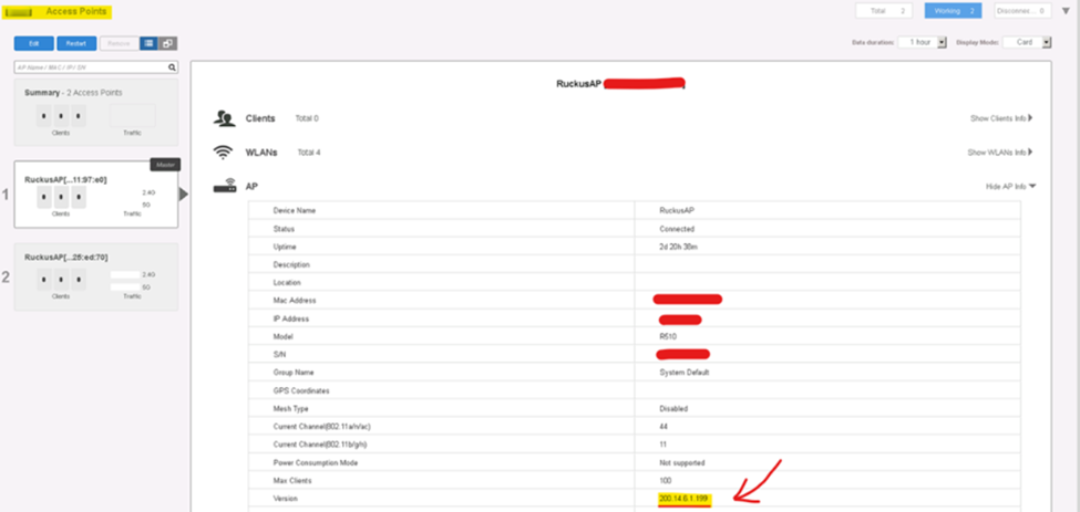 Please refer to the below screenshot for more information on how to know your Unleashed Access Points version details.