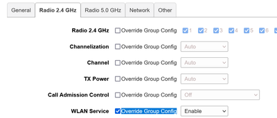 Same settings can be verified from individual AP>>>>>Edit>>>> if WLAN service>>>>>Override Group Config is in checked state and Disable>>>>Change to Enable.