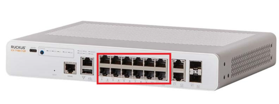 Could you please disconnect the Access point cable from the port which is connected to the Switch (please refer to the below figure) and connect it back to the  ports in the Switch and kindly check if the APs are turning on and connecting to RUCKUS Wi-fi?