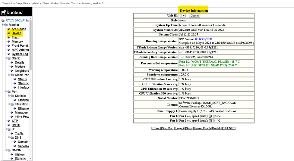 Could you please login to the RUCKUS ICX-7150-C12P Switch and share the information as shown in the below screenshot?