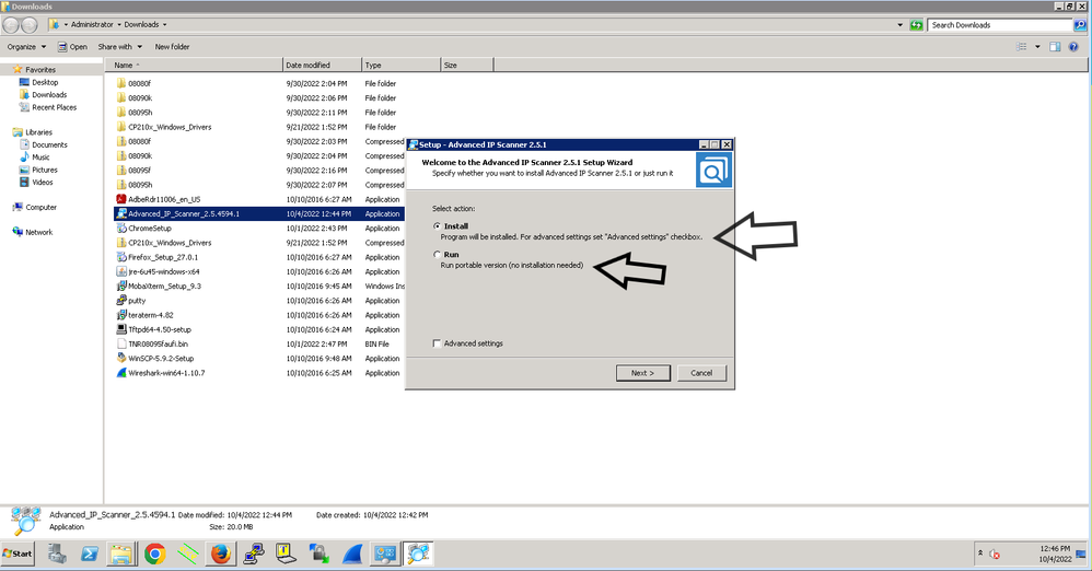 To check the IP address we don't need to install the Advanced IP scanner instead we can use the portable option ( install.exe that install the app in your computer).