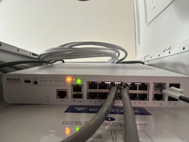 Please help us with pictures of your ICX-7150-C12P Switch showing the status of the lights and cable connections to the Switch ports.