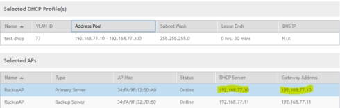 DHCP pool configured on VSZ : 192.168.77.0/24 (no configuration is done for this subnet on core switch)