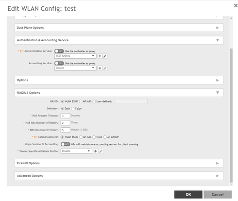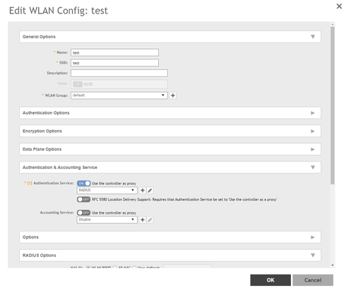Maybe there is something in here that needs further configuring when setting up the SSID. Under "RADIUS Options".