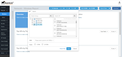 One of the VSZs' access points showing "unknown" with no data displayed.