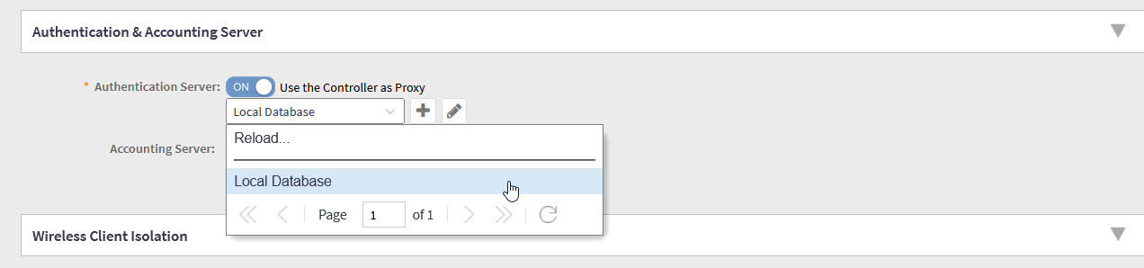 While setting up one WLAN I tried to select Local Database as the 802.1x authentication server (controller as proxy) but it doesn't show Local Database as an option.