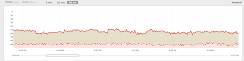 Throughput on the 5Ghz Desktop and Laptop devices is equally unstable and one minute can be 100Mbps and then the next 500Mbps. The noise percentage varies (in NetSpot) from 4-8%