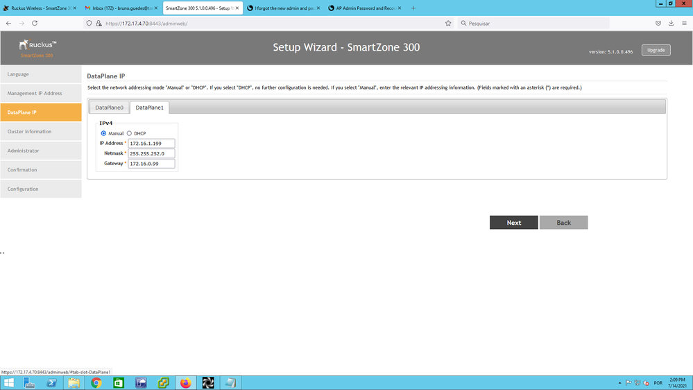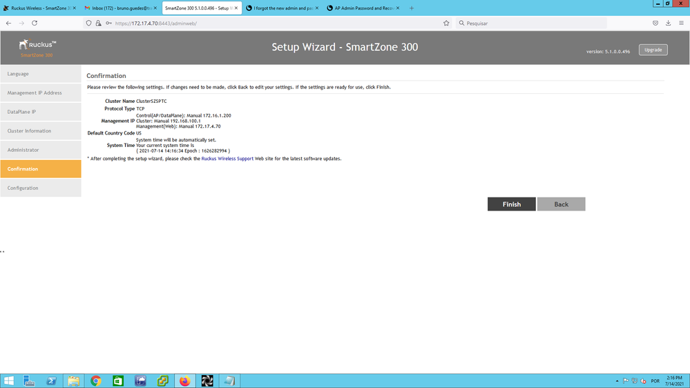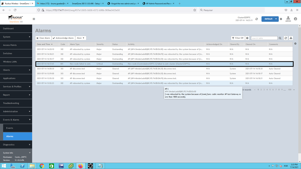 I have two SmartZone 300 (v5.1) working perfectly until recently. But some days ago one of them simply lost its configuration and left the cluster. Yesterday I try to rejoin it, but as you can see in the images, it is not joining the cluster and I don't have any clue.